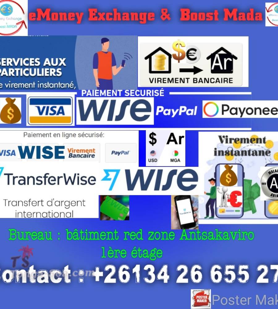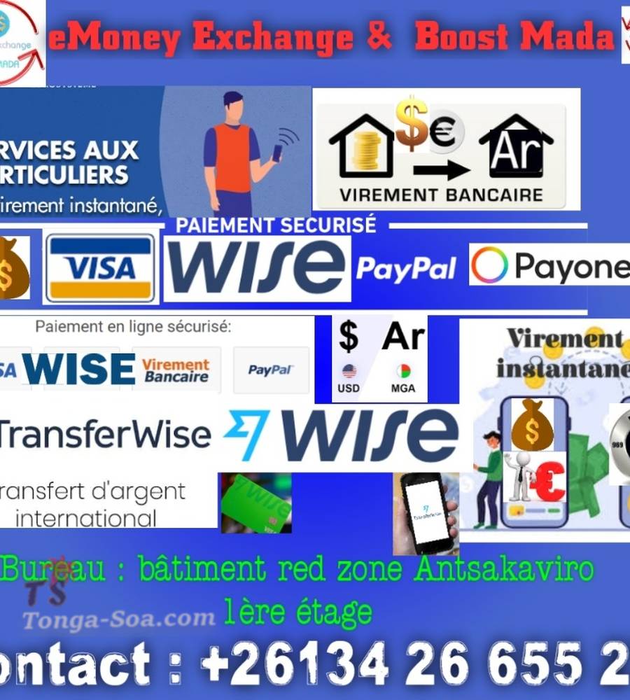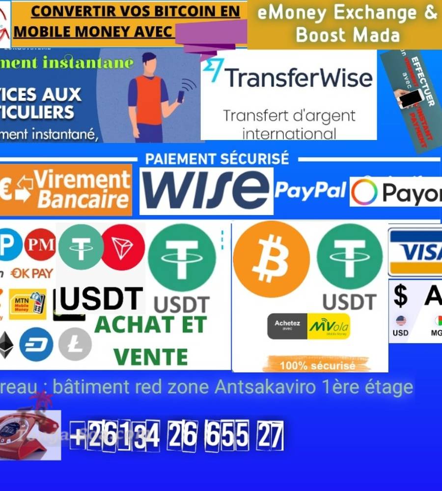 instantanée 5000$(€) à 50 000$(€) en Ariary