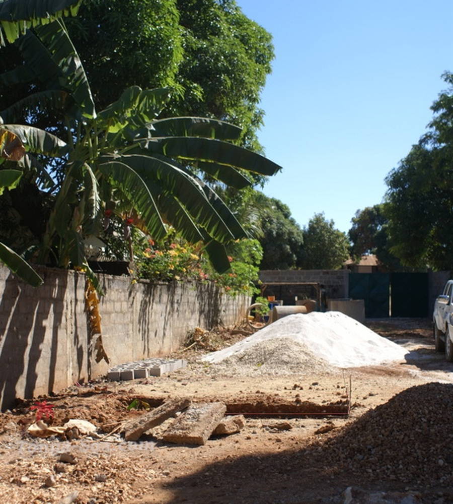 Sur le terrain, presence d’un puits, fosse septique faite, canalisations d’ecoulement des eaux de pluies prevues. Clos et securise.