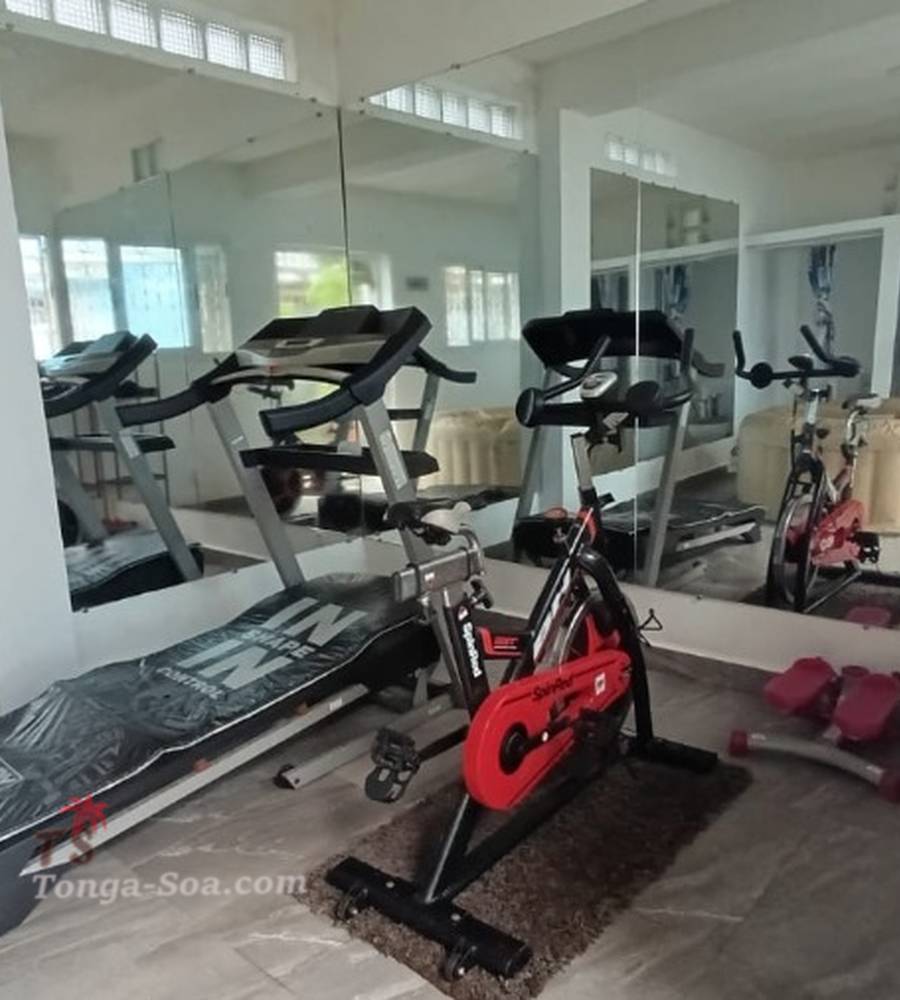Divisee en deux parties : salle de sport et salle de stockage.