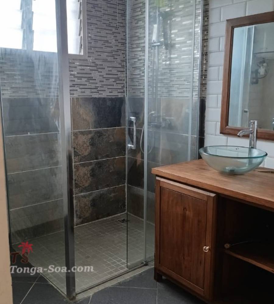 Maison : Salon avec cuisine, douche, WC, chambre.Garage : Pour 2 voitures.Maison basse :