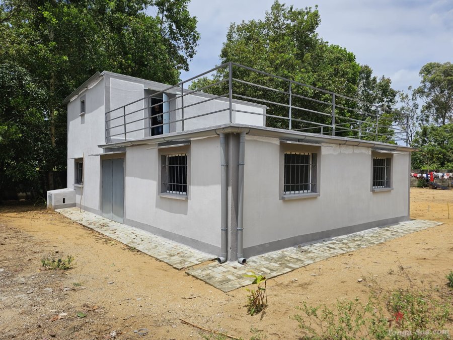 Villa à vendre de 140m2 , normes européennes, année 2023, sur un terrain de 1200m2, bien clôturé et sécurisée, accès voiture. Fonctionne avec panneau solaires. Au Rdc: il y a 3 chambres à coucher avec douches italienne, des WC et une pièce à vivre de 52m2 avec une cuisine ouverte. A l étage: une pièce de 35m2 avec une salle d eau, wc, local technique de 5m2 et une grande terrasse de 60m2. Toutes les menuiseries extérieures et porte fenêtres sont en aluminium. Sur le terrain il y a une petite maison de gardien de 30m2 wc et douche intérieure. Papier en règle (Titré et borné). La maison située à ambodivolo ivoloina.