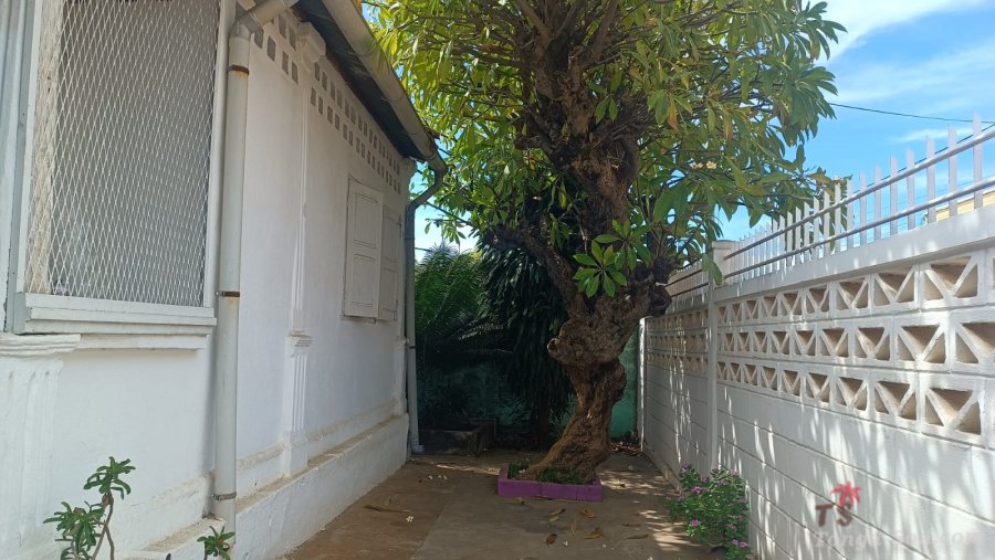 Cette maison de type T4 de plain-pied, entièrement clôturée, située en plein centre-ville de Mahajanga, est proposée à la vente. Une construction ancienne, sol revêtu de carrelage en damier coloré à l’ancienne, comprenant 4 pièces en enfilade composées de 3 chambres, un grand salon, une cuisine ouverte sur la salle à manger et une arrière-cuisine, une salle d’eau indépendante et un WC, ainsi qu’une petite pièce idéale pour une buanderie. Une terrasse couverte complète le tout.